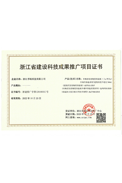 浙江省建設(shè)科技成果推廣項(xiàng)目證書